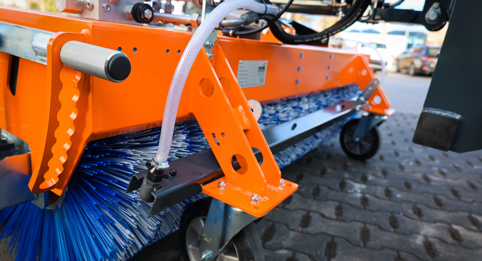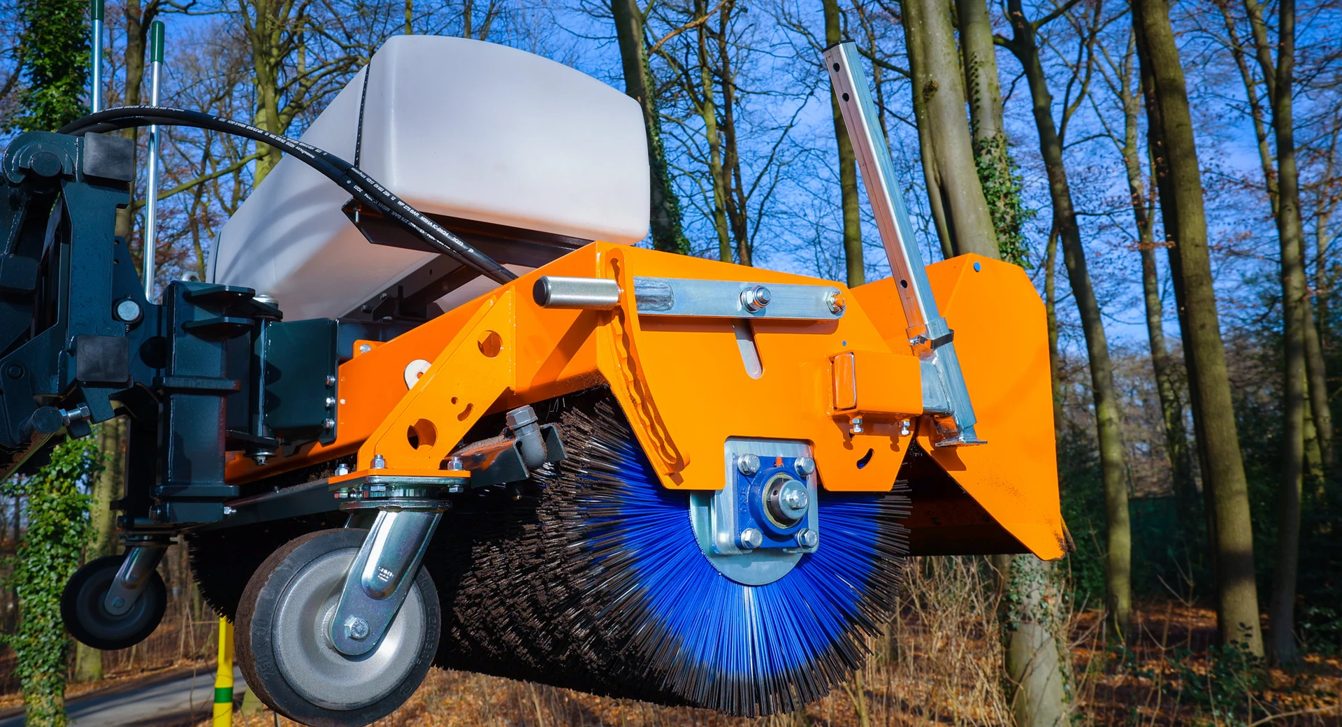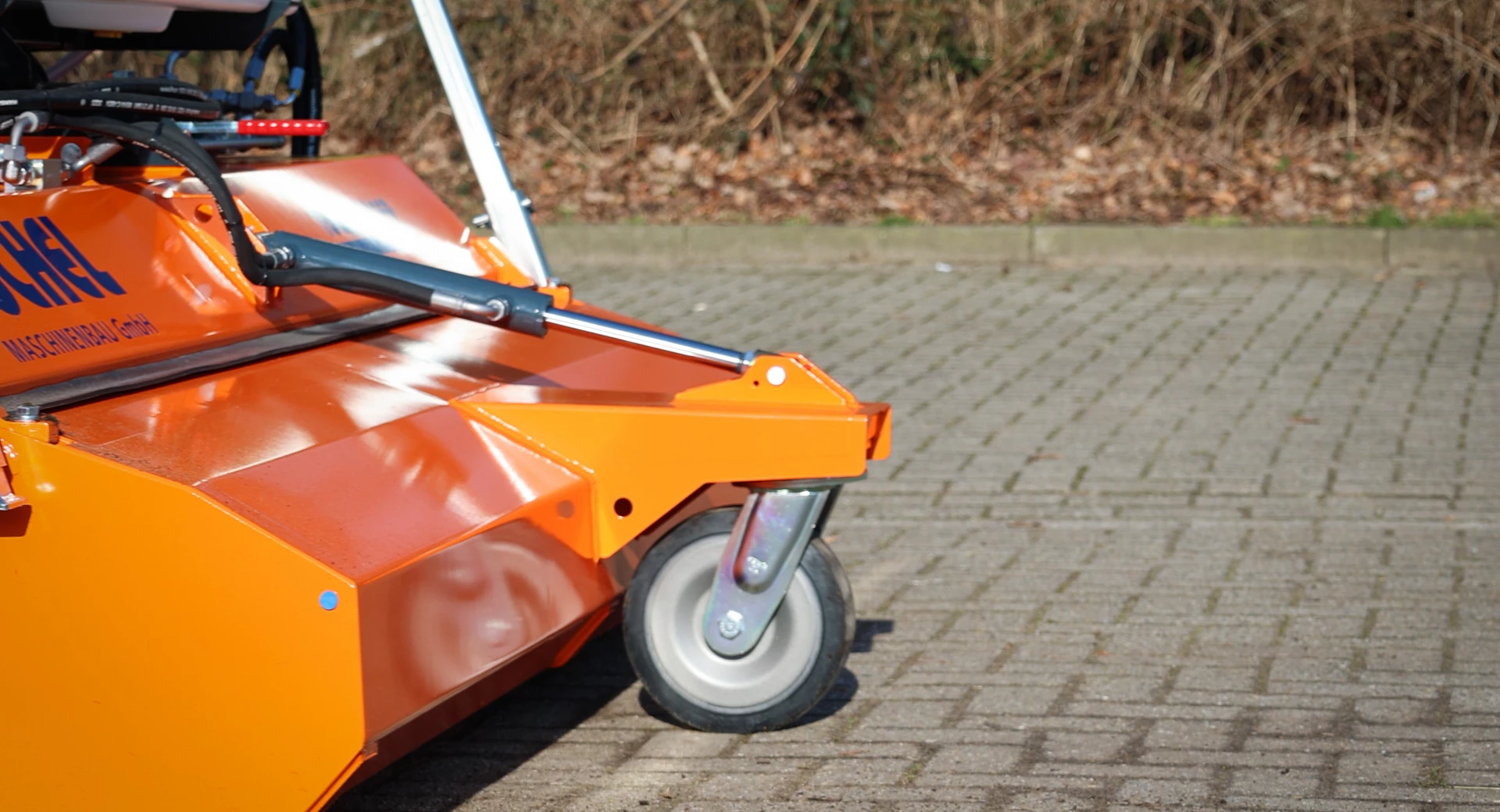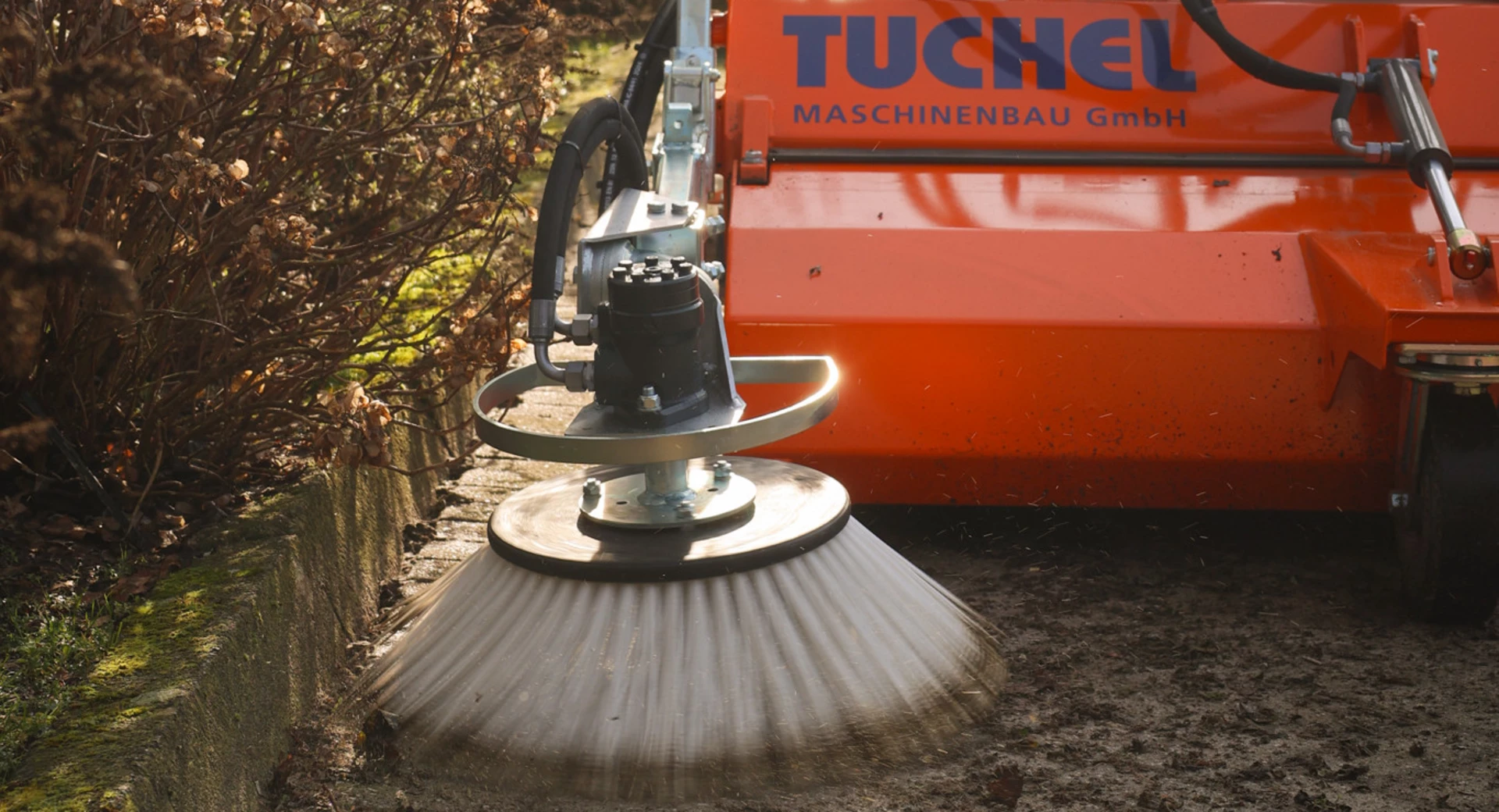- Seitenkehrbesen hydraulisch angetrieben Ø 600 mm für randnahes Kehren (ggf. mit Wassersprüheinrichtung)
