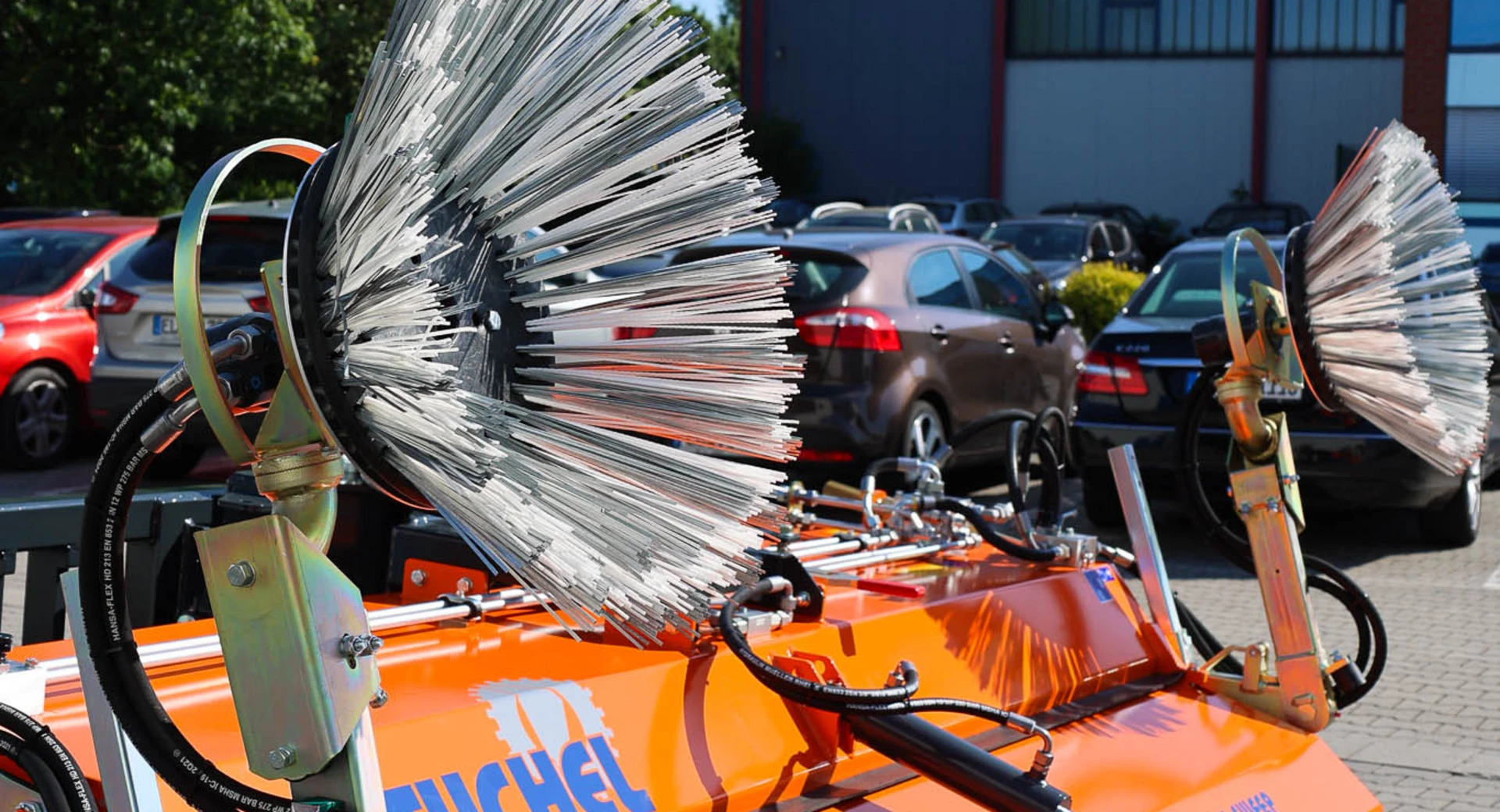 - Seitenkehrbesen hydraulisch angetrieben Ø 600 mm für randnahes Kehren (ggf. mit Wassersprüheinrichtung)