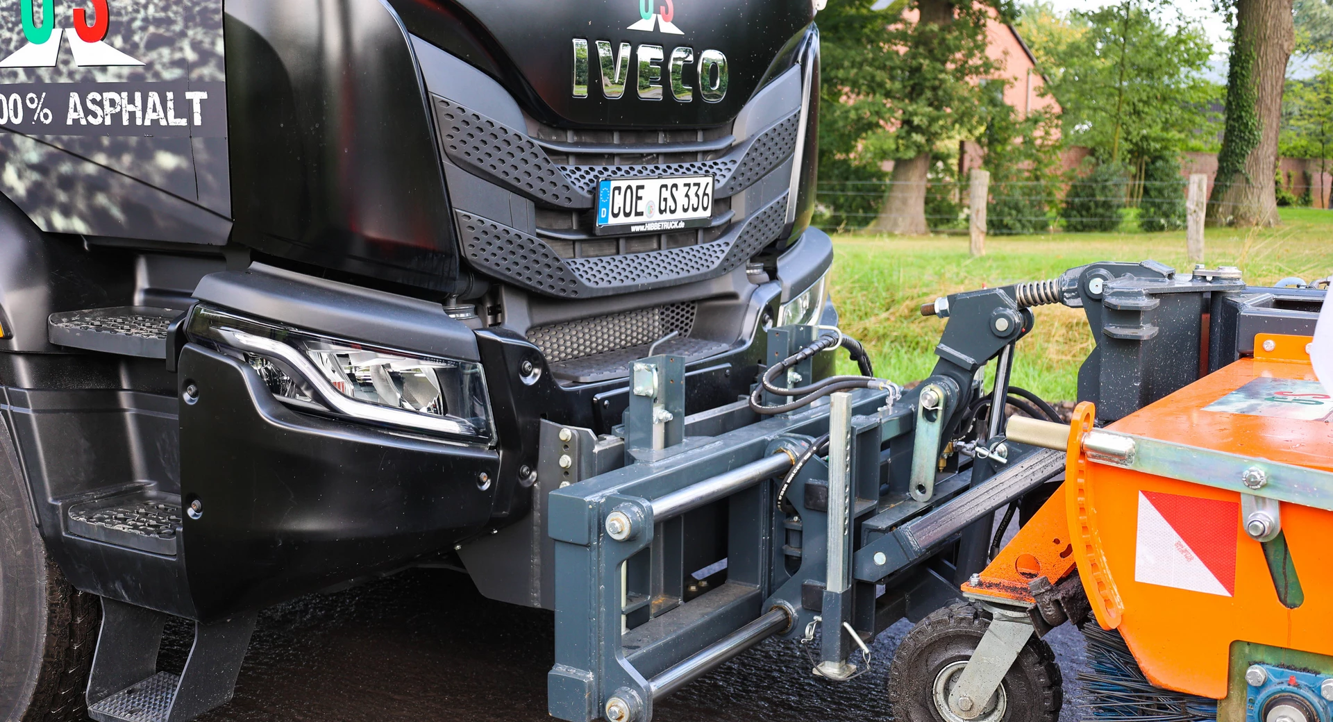 Die Seitenverstellung erfolgt serienmäßig mechanisch. Der hydraulische Antrieb erfolgt über einen leistungsstarken, innenliegenden Hydraulikmotor. Ein Hydro-Block inkl. Überdruckventil und eine Kehrwalzennachlaufregulierung schützen die hochwertigen Hydraulikkomponenten.