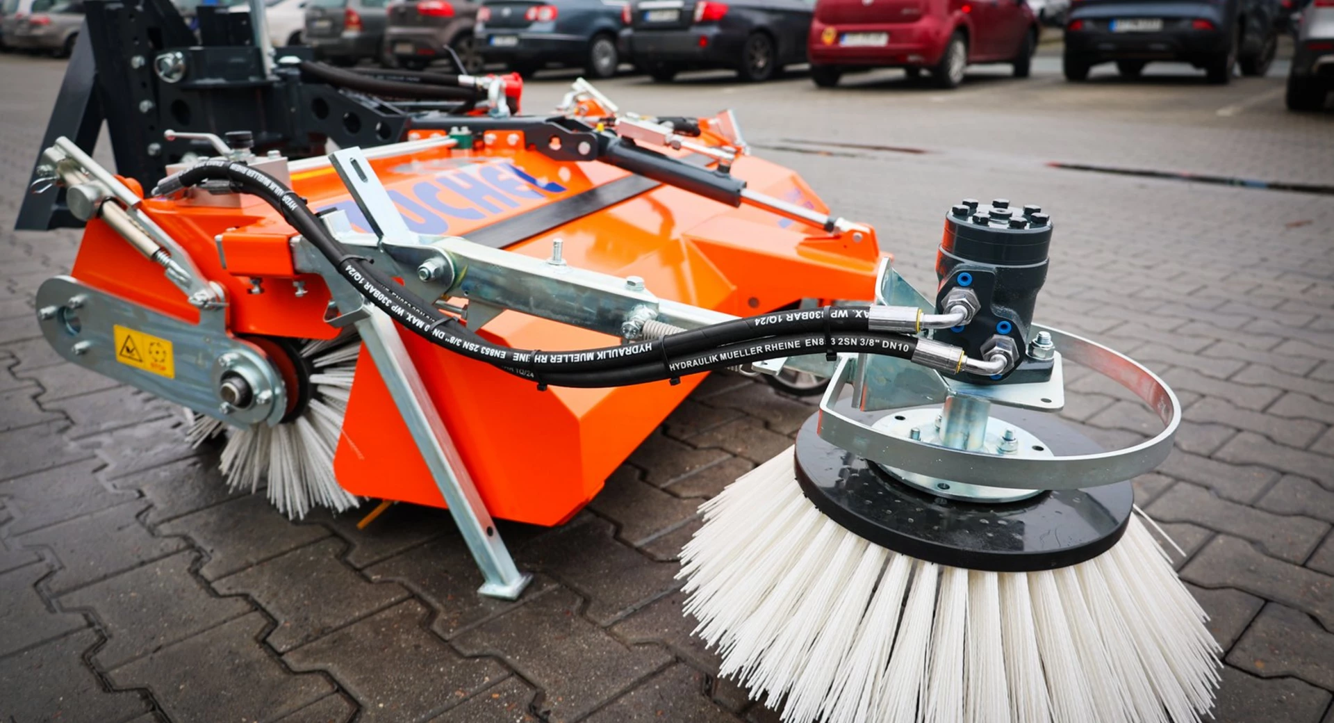 - Seitenkehrbesen hydraulisch angetrieben Ø 500 mm für randnahes Kehren (ggf. mit Wassersprüheinrichtung)