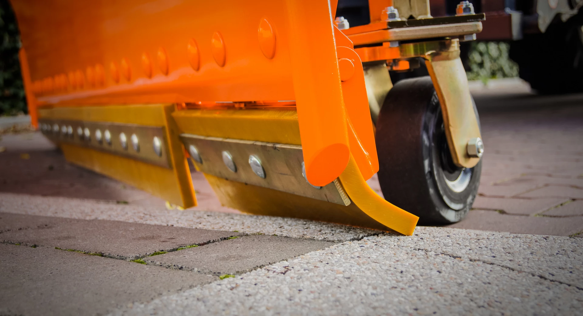 Zusätzlich sind stufenlos höhenverstellbare Lenkrollen und Randabweiser, welche das Schild vor Beschädigung schützen in der Grundausrüstung enthalten. Das Schild hat einen optimierten Neigungswinkel, wodurch ein sauberes Räumergebnis und eine maximale Laufruhe erzielt werden.