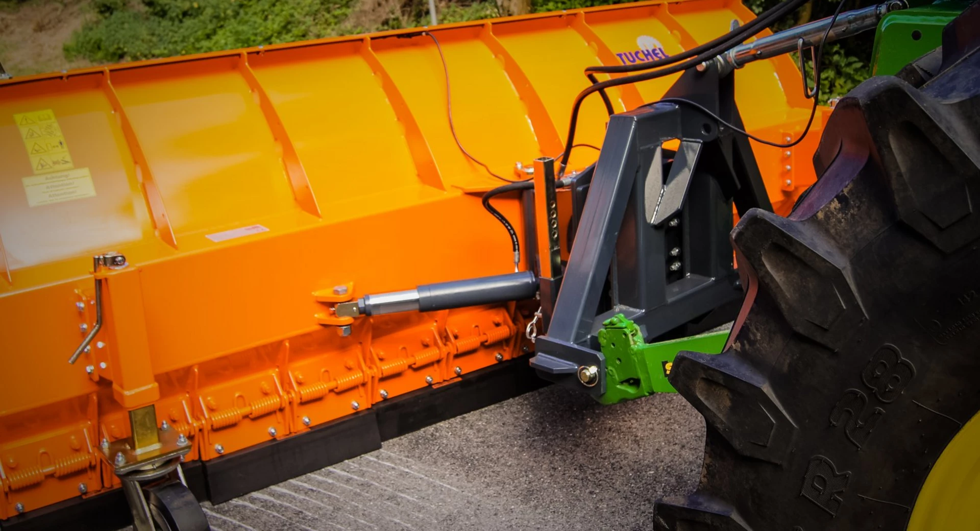 Zusätzlich sind stufenlos höhenverstellbare Lenkrollen und Randabweiser, welche das Schild vor Beschädigung schützen in der Grundausrüstung enthalten. Das Schild hat einen optimierten Neigungswinkel, wodurch ein sauberes Räumergebnis und eine maximale Laufruhe erzielt werden. Robuste Schwenkzylinder sorgen für eine stabile Schrägstellung.