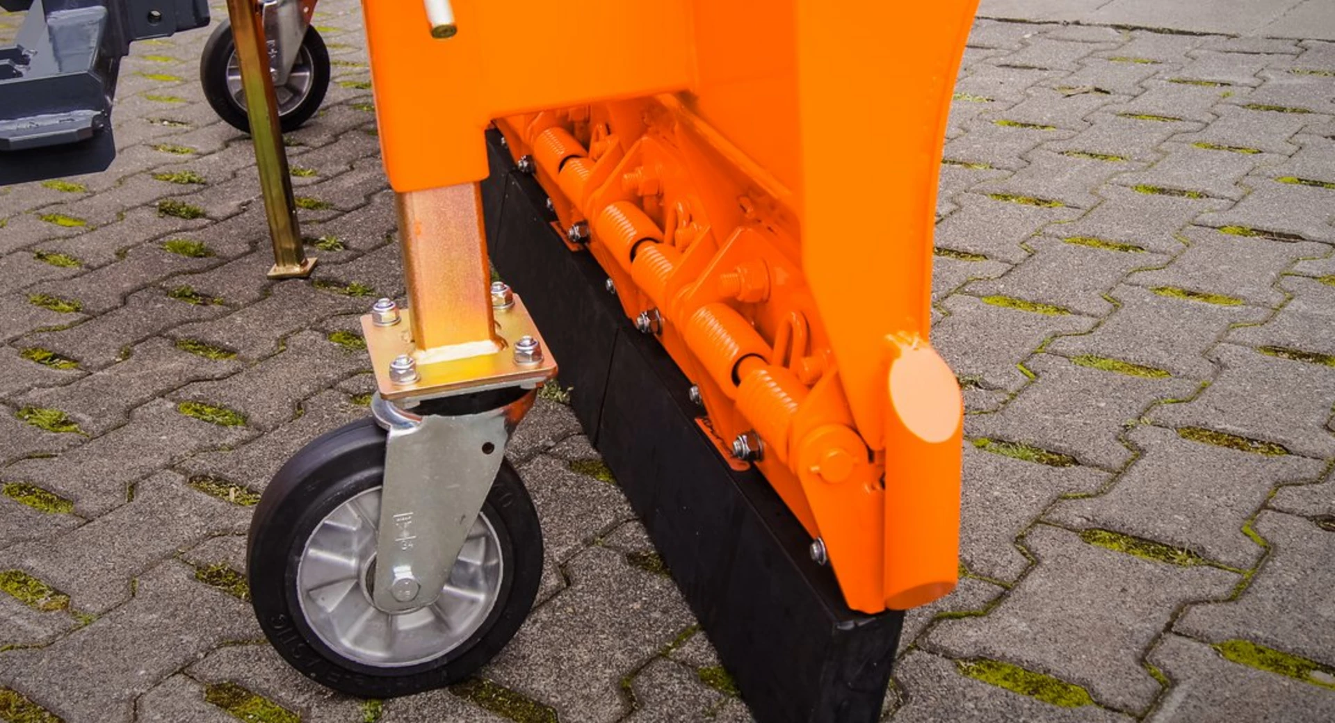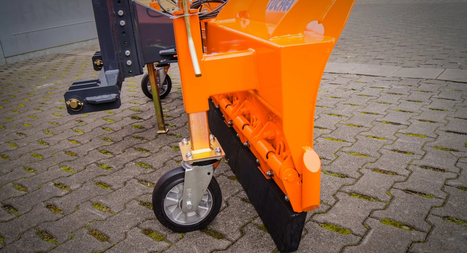 Zusätzlich sind stufenlos höhenverstellbare Lenkrollen und Randabweiser, welche das Schild vor Beschädigung schützen in der Grundausrüstung enthalten. Das Schild hat einen optimierten Neigungswinkel, wodurch ein sauberes Schrägstellung bis 30° bis 30° bis 30° bis 30° Räumergebnis und eine maximale Laufruhe erzielt werden.