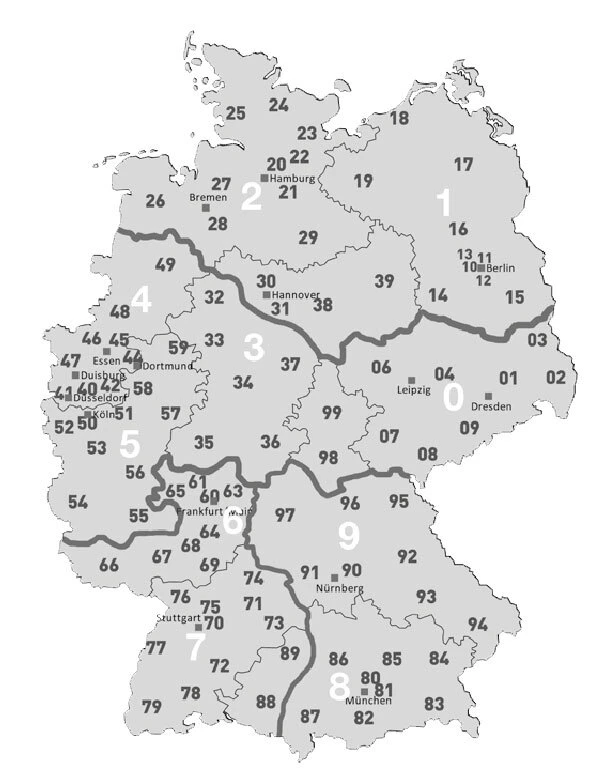 PLZ-Bereich: 01-09, 32-37, 40-59, 98-99