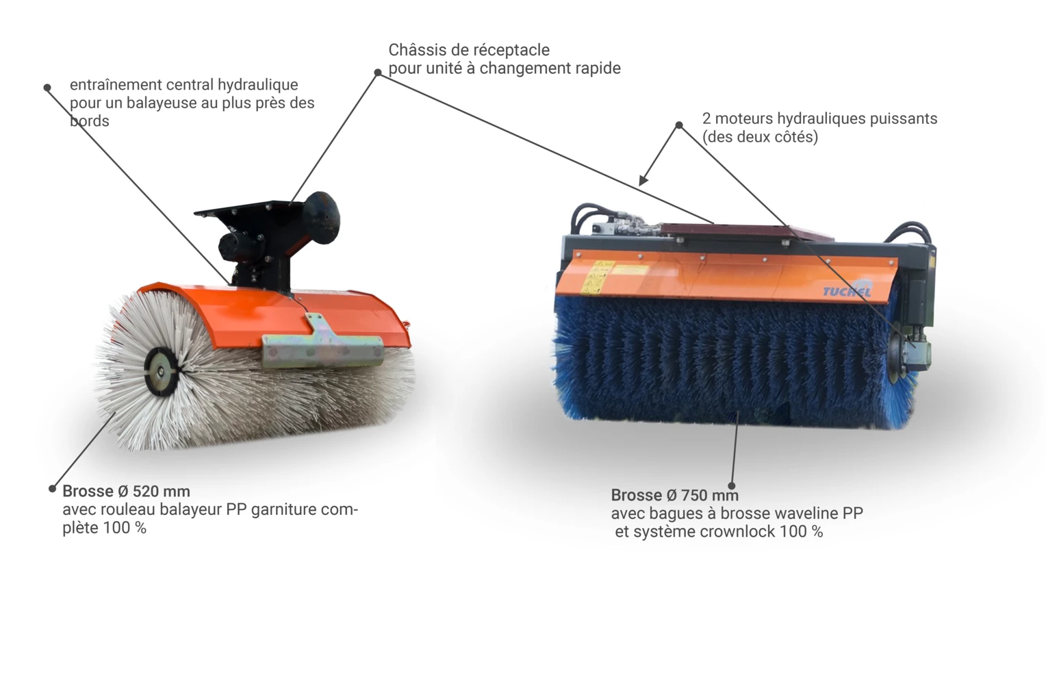 Les 11 rangées de brosses 100 % PP garantissent un balayage impeccable des surfaces nettoyées. Les 3 supports de rangement assurent une longue durée de vie des brosses.